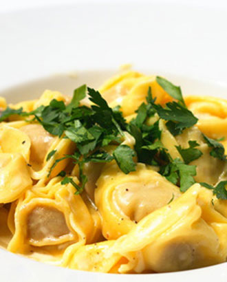 | Tortellini mit Käsefüllung in Basilikum-Tomaten-Sauce |